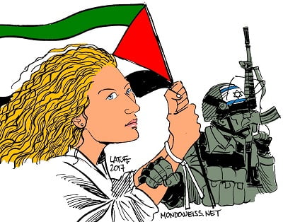 Η σύλληψη και η απαγγελία 12 κατηγοριών κατά της 16χρονης Παλαιστίνιας Άχεντ Ταμίμι από ισραηλινό στρατοδικείο είναι ξεγύμνωμα όλων όσων μαζί με τις ΗΠΑ και το Ισραήλ μιλούν για «Δημοκρατία και Ελευθερία», που επιβάλλουν το «δίκιο» τους με στρατοδικεία, φυλακίσεις και δολοφονίες νέων παιδιών.