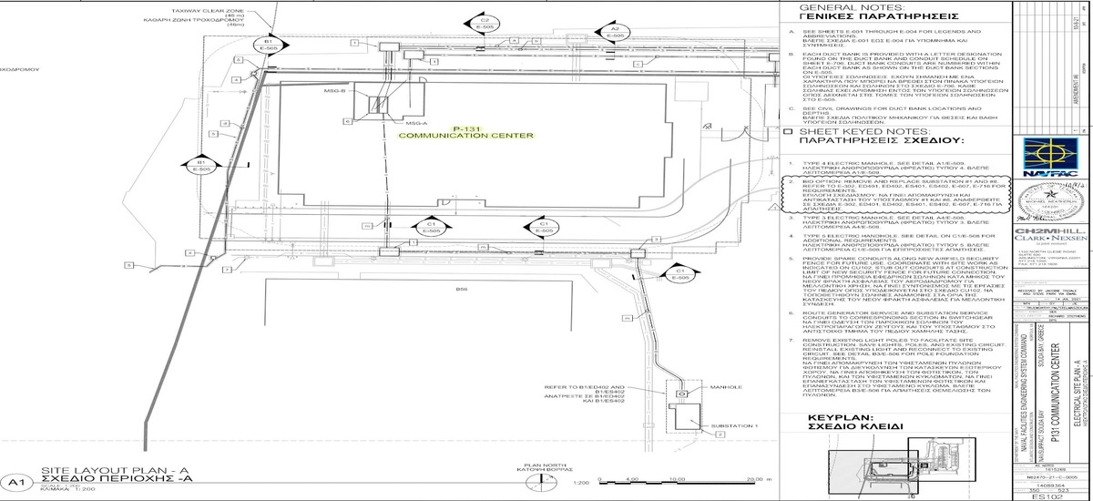 Παραπέρα, προσδιορίζει ως χρόνο περάτωσης τις 900 μέρες περίπου, σημειώνοντας ότι θα αφορά μια τριώροφη εγκατάσταση που θα στεγάσει το «Naval Computer and Telecommunications Area Master Station Atlantic (NCTAMS LANT) Detachment» και το «Base N6 Communications Department».