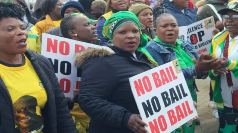 Μέλη του αντιπολιτευόμενου Κομμουνιστικού Κόμματος «Economic Freedom Fighters», που είχε ζητήσει να κλείσει το συγκεκριμένο αγρόκτημα, ήταν επίσης παρόντα στην αίθουσα του δικαστηρίου.