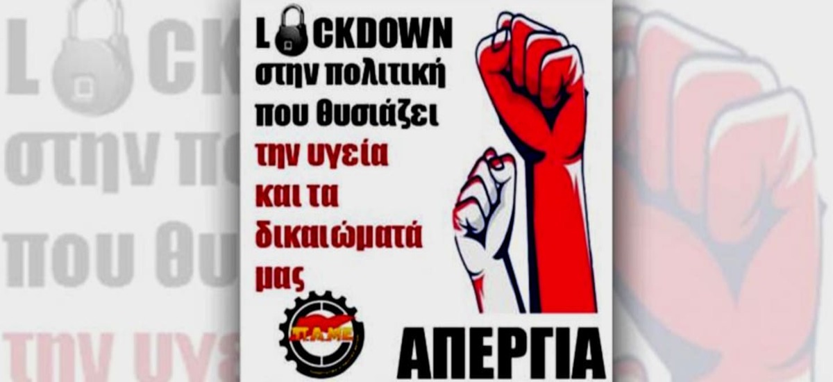 Καλούν σε μαζική συμμετοχή στην απεργία, ώστε να «παγώσουν» οι χώροι δουλειάς, όπου τα μέτρα προστασίας για τον κορωνοϊό είναι από ελλιπή έως ανύπαρκτα, αποσιωπούνται κρούσματα και δεν γίνονται μαζικά τεστ με ευθύνη των εργοδοτών.